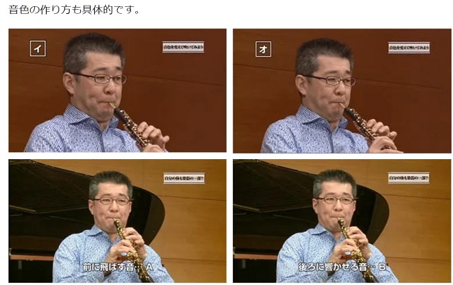 どう吹けば、どんな音が出るのか。変な音はどうやって吹いていると出るのか。具体的に実践しながら解説しています。